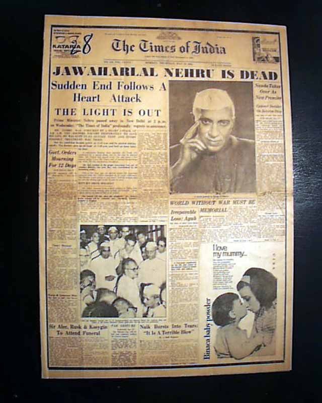 Jawaharlal Nehru, Prime Minister of India, is dead. At 2 p.m. local time today 460,000,000 people in this country that has been forged on the anvil of this one man’s dreams and conflicts were plunged into the nightmare world which they have, in the last decade, come to dread as the "after Nehru" era.